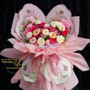 Bó hoa cánh bướm mix hoa sáp tone hồng