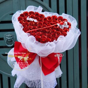 Bó hoa kim tuyến trái tim tình yêu công chúa với chiếc nơ xinh