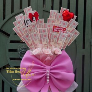 Bó hoa tiền 500đ cắm tim