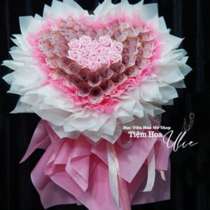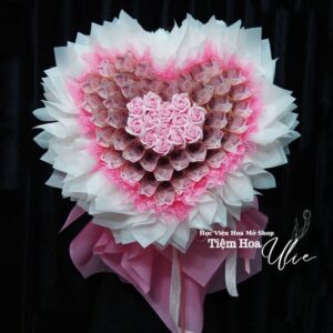 ⚜️Số lượng hoa: 40 tờ + 13 hoa sáp 3 lớp tone hồng
