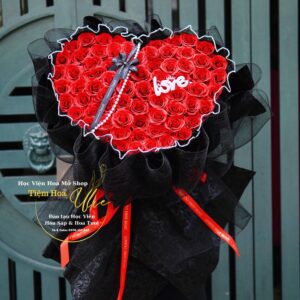 Bó hoa trái tim tình yêu tone đỏ giấy gấm đen