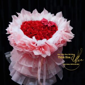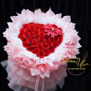 Bó Hoa công chúa trái tim tone đỏ nhuỵ xoắn