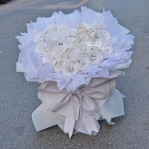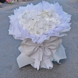 Bó hoa trắng nhủ kim tuyến nơ to