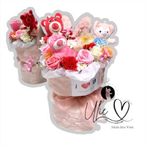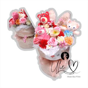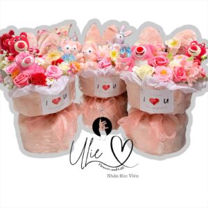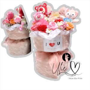 Hoa Trụ Tai Thỏ đang được giới trẻ ưu thích vì độ cute dễ thương của em nó nay Ulie thiết kế thêm hoa sáp 4 lớp phối cùng gấu mini đáng yêu tô điểm thêm sự cute cho em nó. với 3 bé Gấu cùng tone màu hoa hồng phấn nhẹ nhàng.