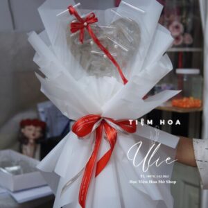 Khuôn bó hoa trái tim để tiền 15 tờ