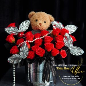- Hoa được làm bằng Sáp cùng gấu bông teady được quấn kỹ và không làm hư hại đến gấu.