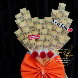 Gồm 30 tờ tiền 10k kèm 3 hoa sáp thơm giả