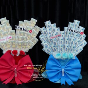 Gồm 30 tờ tiền 5k kèm 3 hoa sáp thơm giả