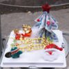 Đi kèm chiếc nơ to làm bằng xốp bitit được điểm ngọc trái tạo điểm nhấn cho sét hoa